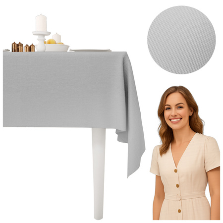 - Obrus na stół o wymiarach 140x240 cm w kolorze jasnym szarym.