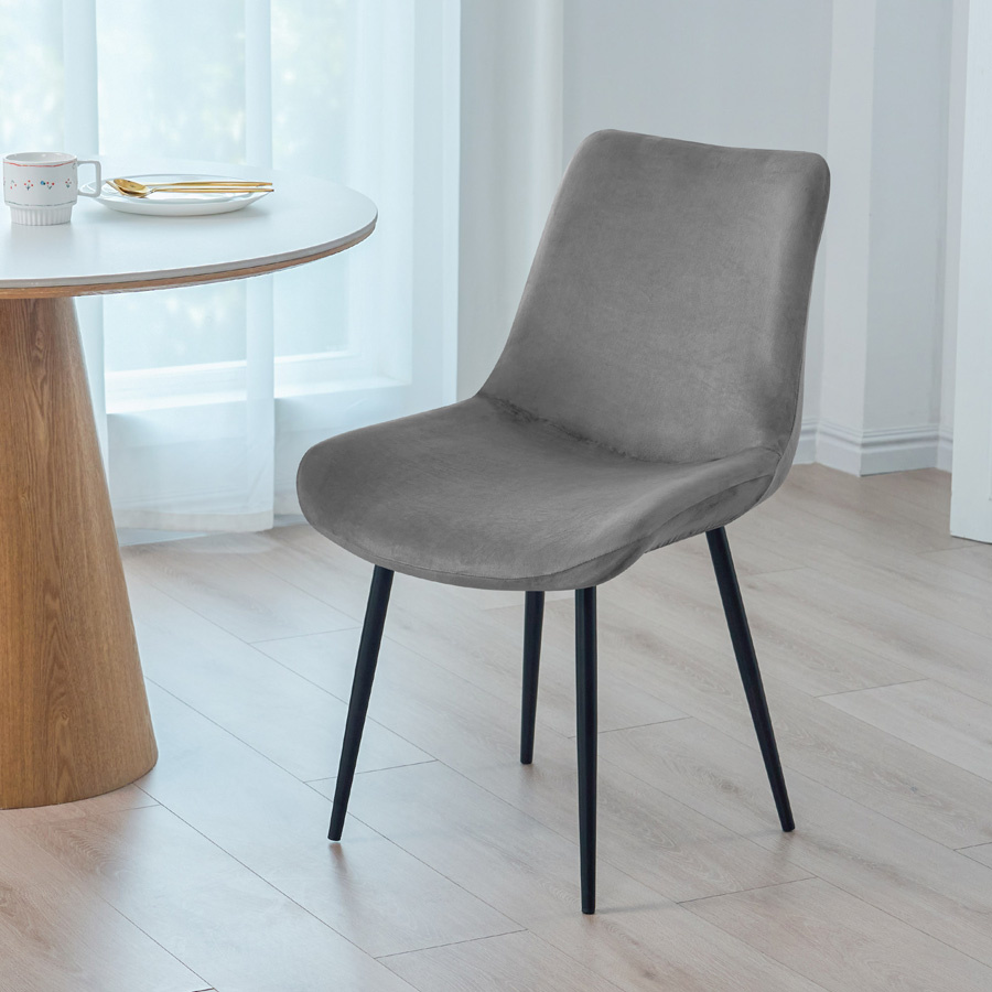 Pokrowce wykonane są z miękkiego, grubego weluru. Domieszka elastanu sprawia, że materiał idealnie dopasowuje się do kształtu kubełkowych krzeseł i wraca do pierwotnych wymiarów.