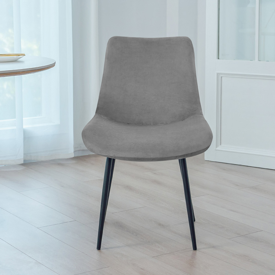 - Pokrowiec na duże krzesło skandynawskie kubełkowe, uszyty z miękkiego weluru w kolorze ciemnym szarym.