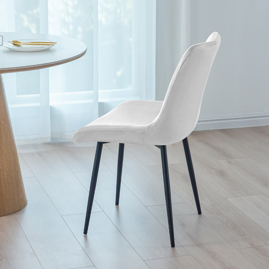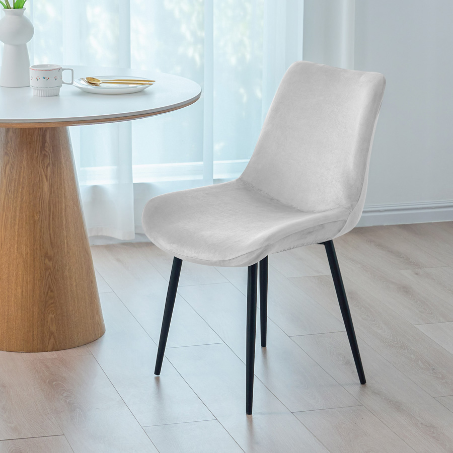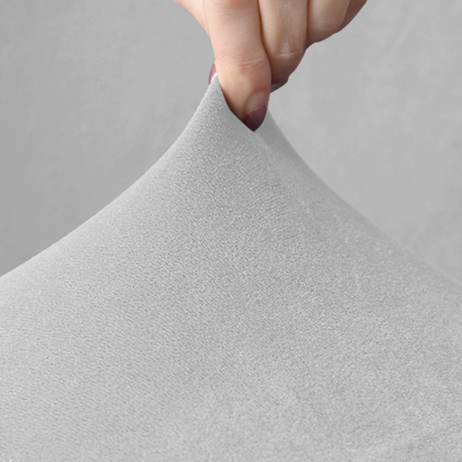 Pokrowce wykonane są z miękkiego, grubego weluru. Domieszka elastanu sprawia, że materiał idealnie dopasowuje się do kształtu kubełkowych krzeseł i wraca do pierwotnych wymiarów.