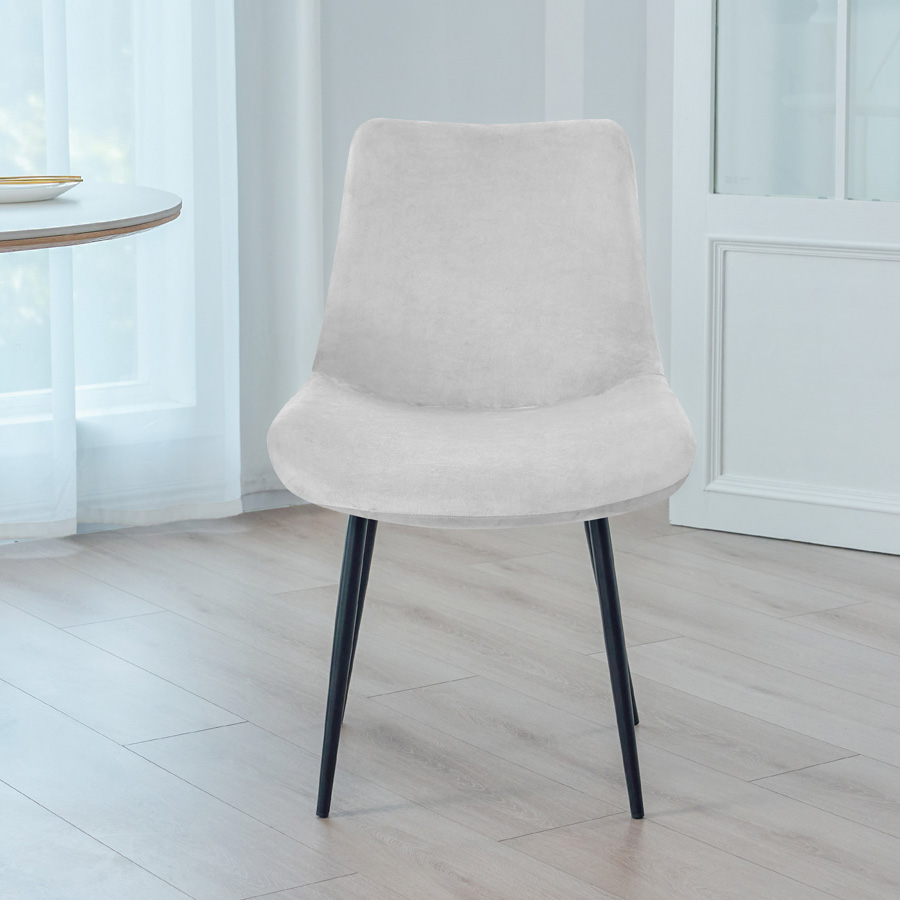 - Pokrowiec na duże krzesło skandynawskie kubełkowe, uszyty z miękkiego weluru w kolorze jasnym szarym.