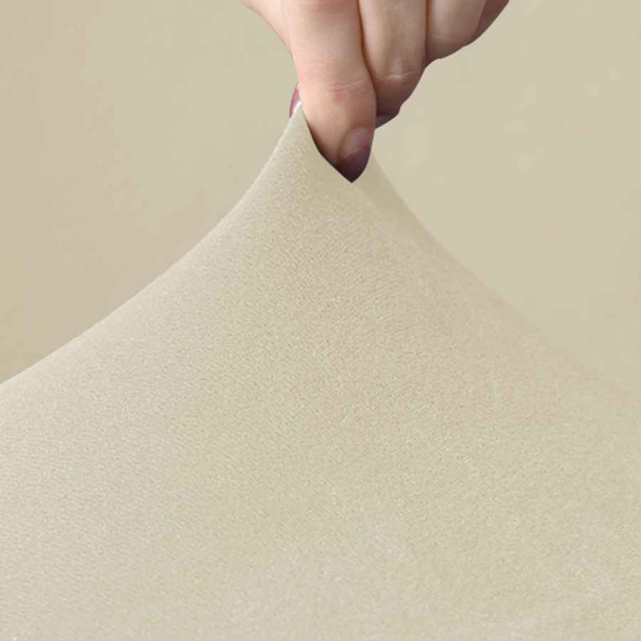 Pokrowce wykonane są z miękkiego, grubego weluru. Domieszka elastanu sprawia, że materiał idealnie dopasowuje się do kształtu kubełkowych krzeseł i wraca do pierwotnych wymiarów.