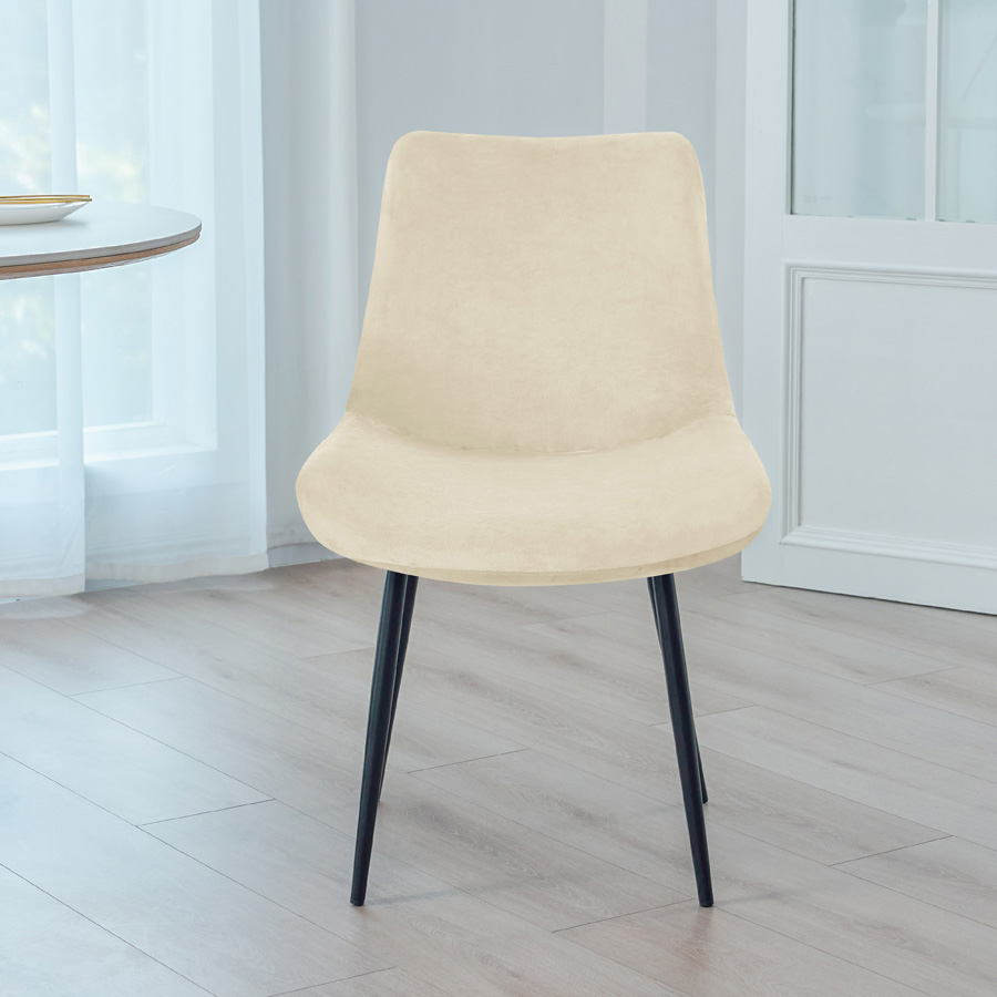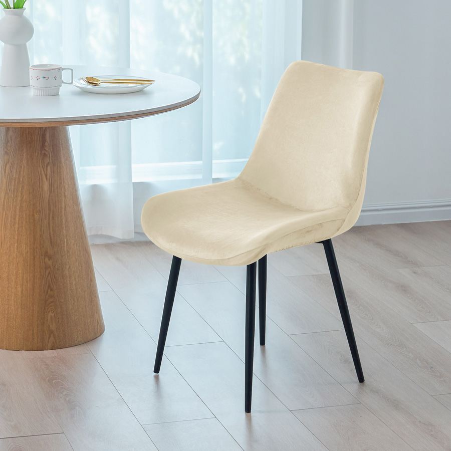 - Pokrowiec na duże krzesło skandynawskie kubełkowe, uszyty z miękkiego weluru w kolorze kremowym.