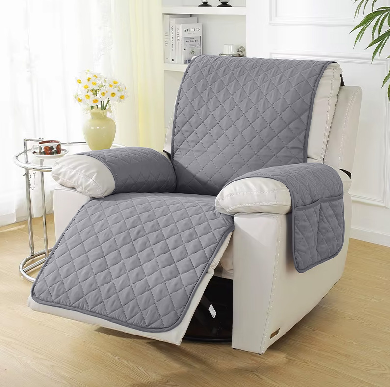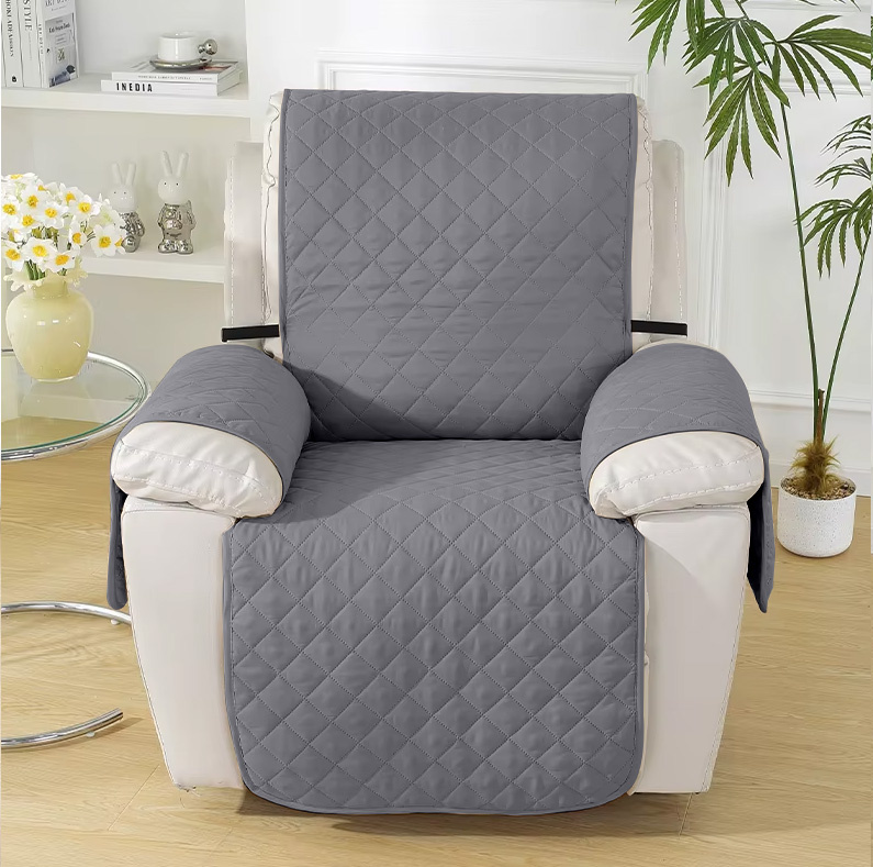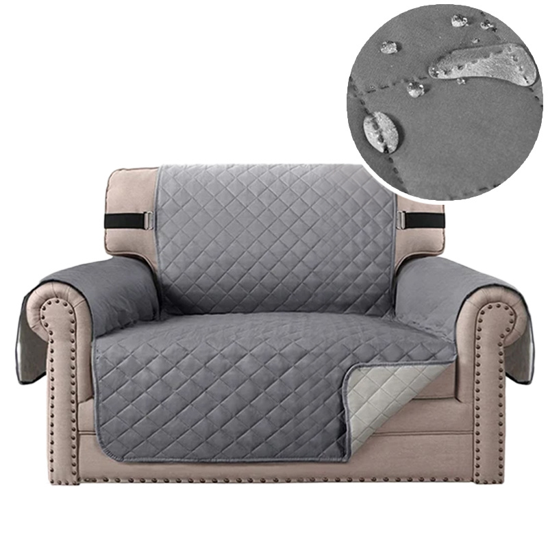 - Pokrowiec MATA na kanapę wodoodporna, pikowana w kolorze szarym o szerokości 53 cm