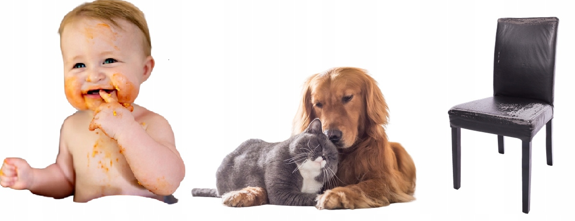 ✔️ zabrudzeniami (jedzenie, napoje, codzienne użytkowanie)