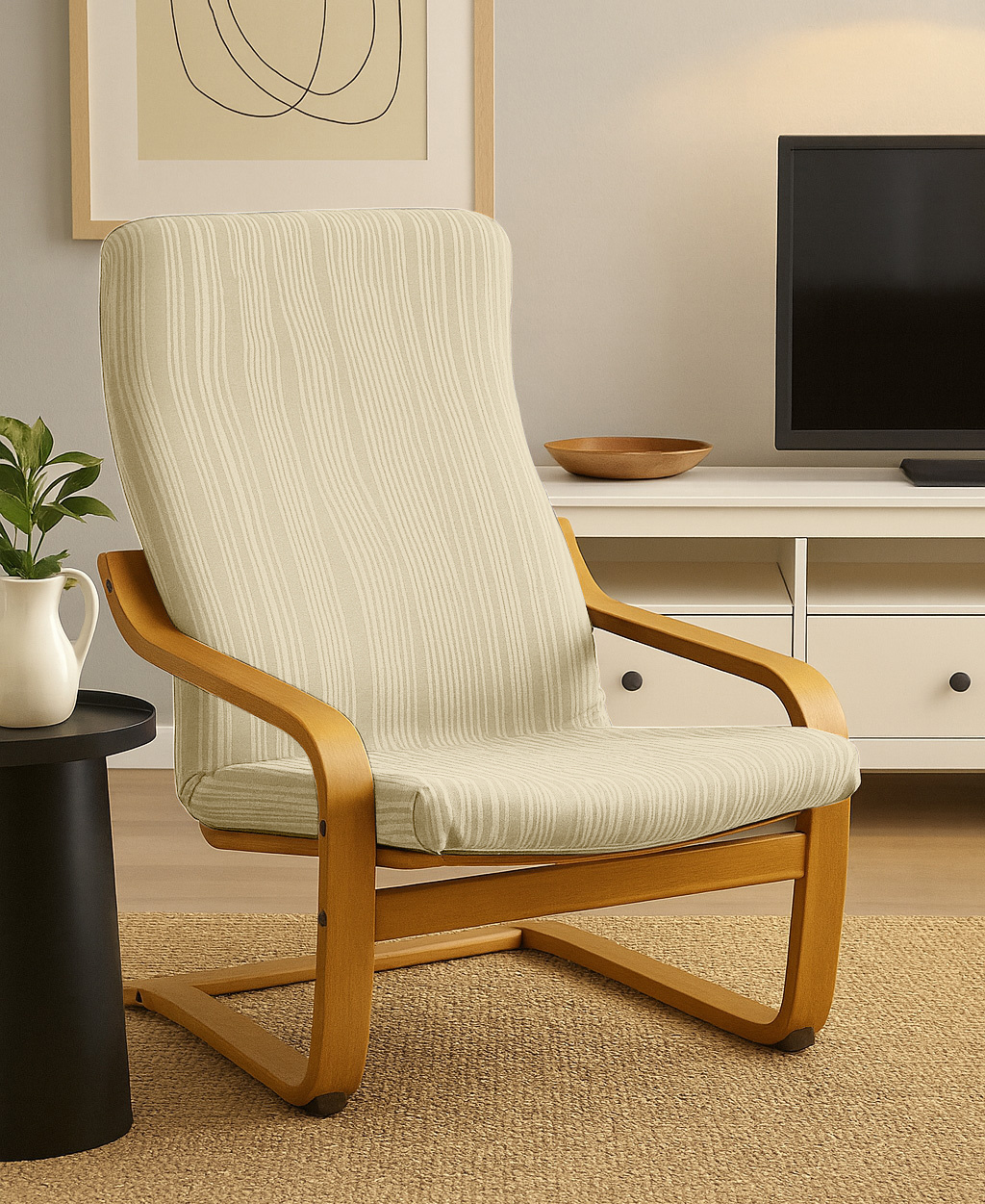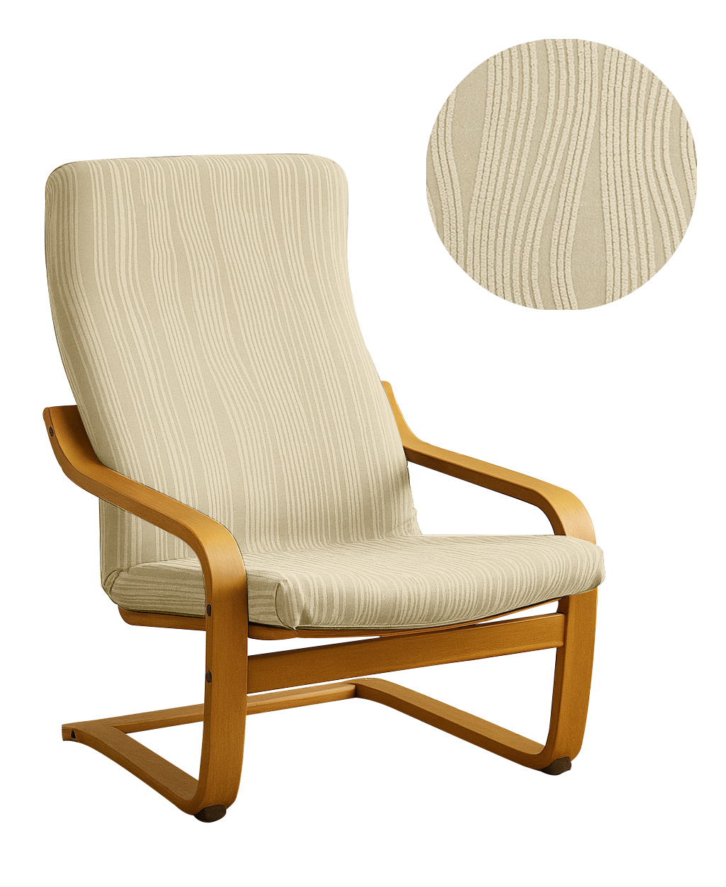 POKROWIEC na FOTEL FINKA KREMOWY żakard wypukły, PASY, tkanina strukturalna