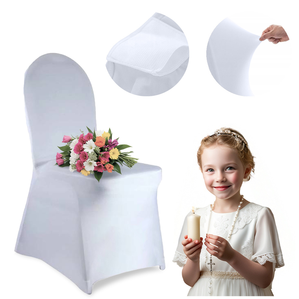 - Biały pokrowiec bankietowy na krzesło bez wycięcia