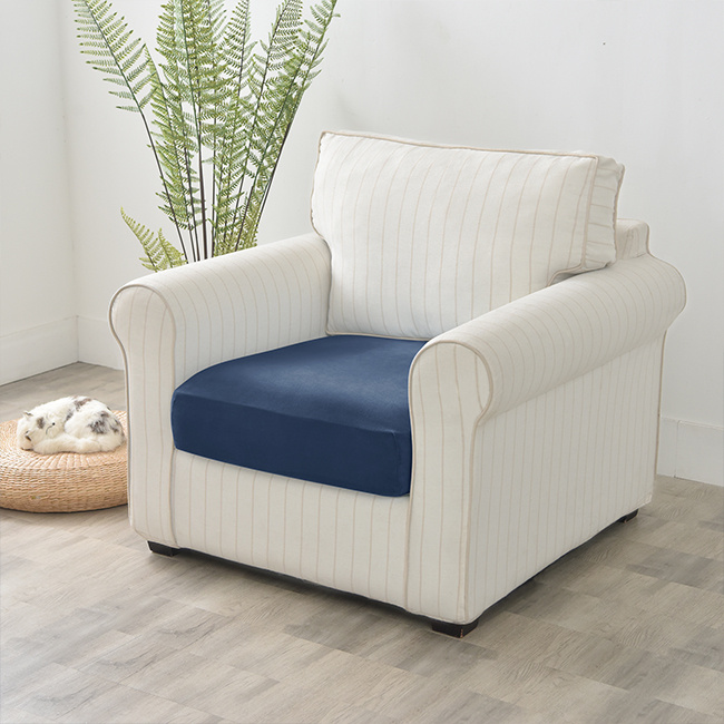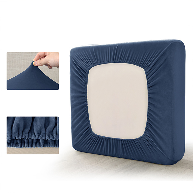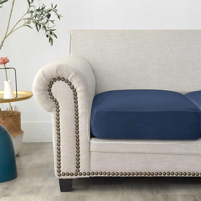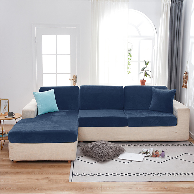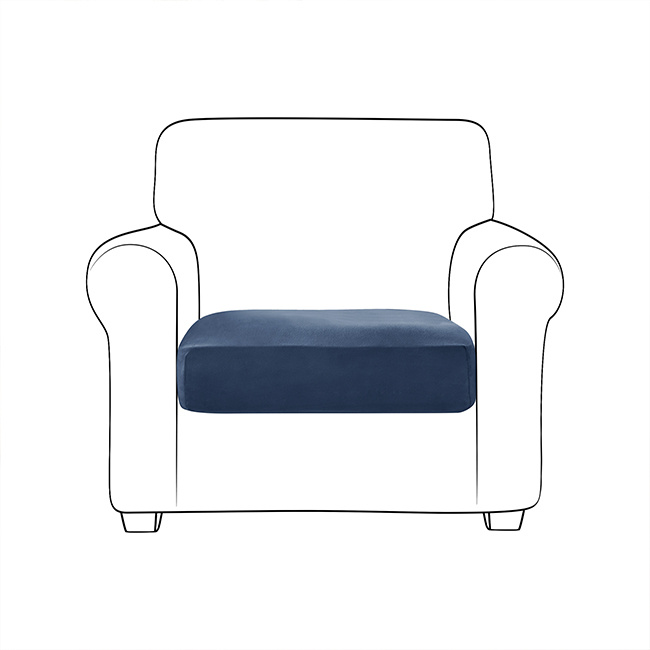 - Welurowy pokrowiec na siedzisko kanapy w eleganckim granatowym kolorze, odpowiedni dla siedzisk od 80 do 100 cm.