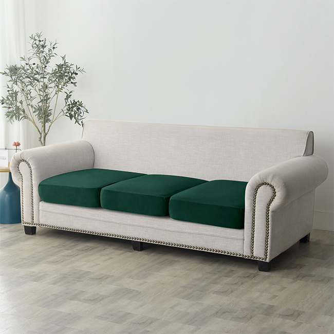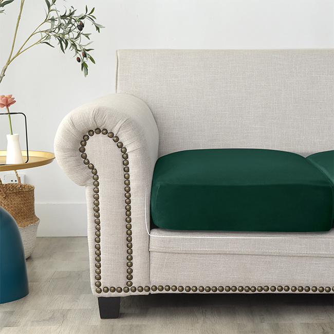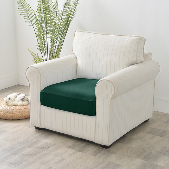 - Welurowy pokrowiec na siedzisko kanapy w eleganckim zielonym kolorze, odpowiedni dla siedzisk od 80 do 100 cm.