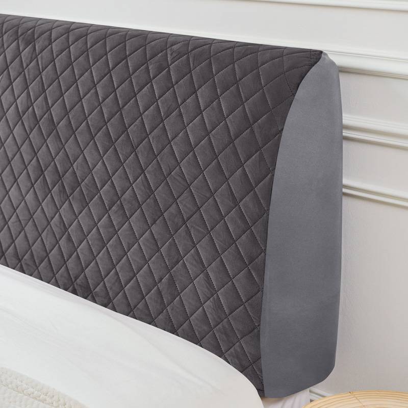 - Pikowany pokrowiec na zagłówek łóżka w kolorze ciemnoszarym – elegancki, elastyczny i przyjemny w dotyku. Odświeża wygląd sypialni, chroniąc zagłówek przed kurzem, otarciami i zabrudzeniami.