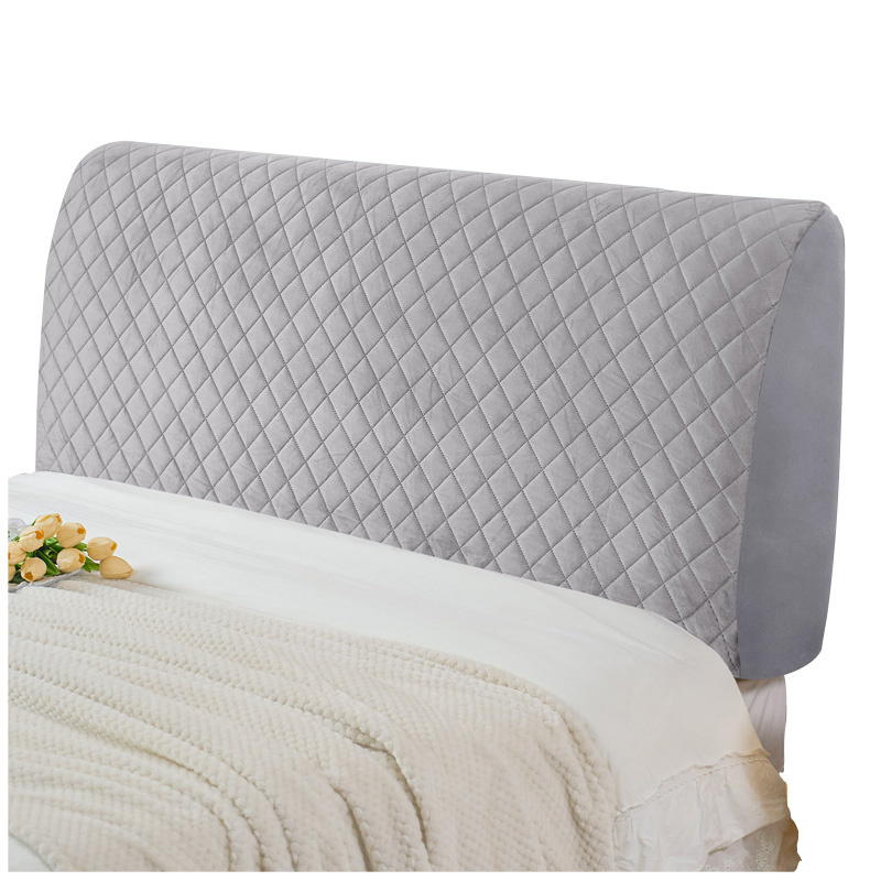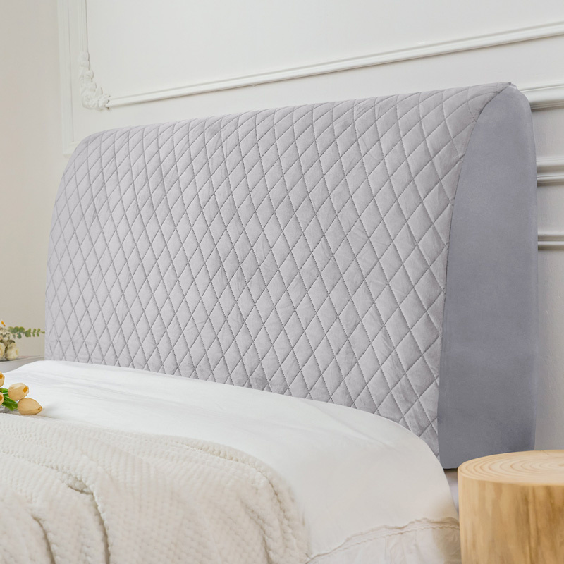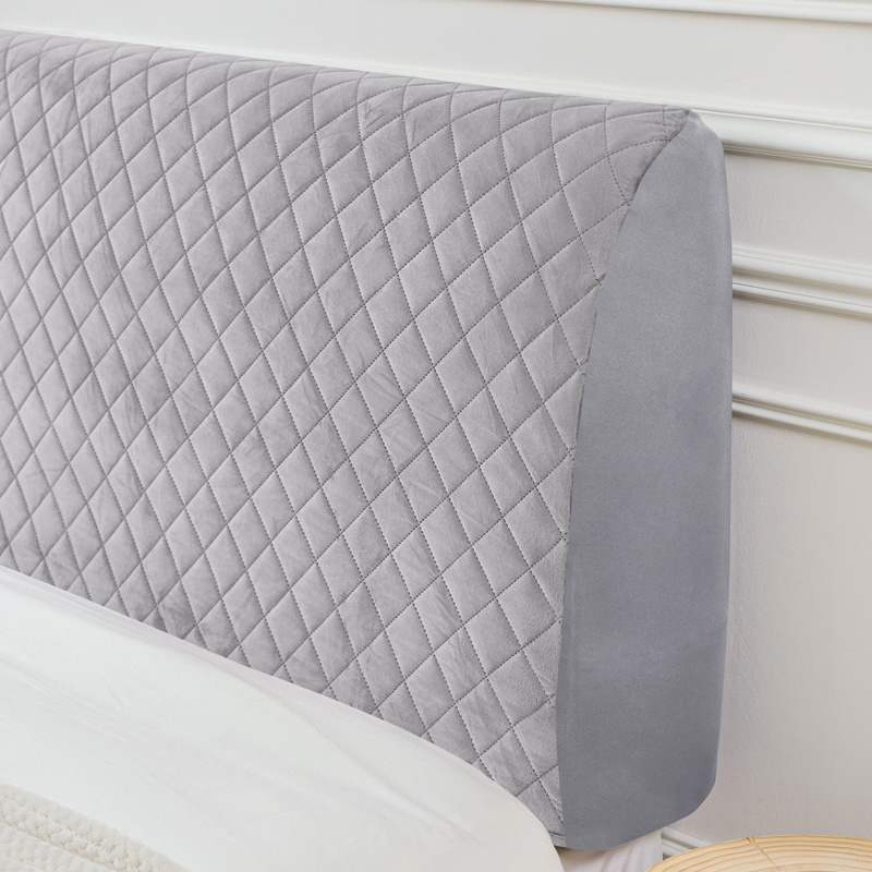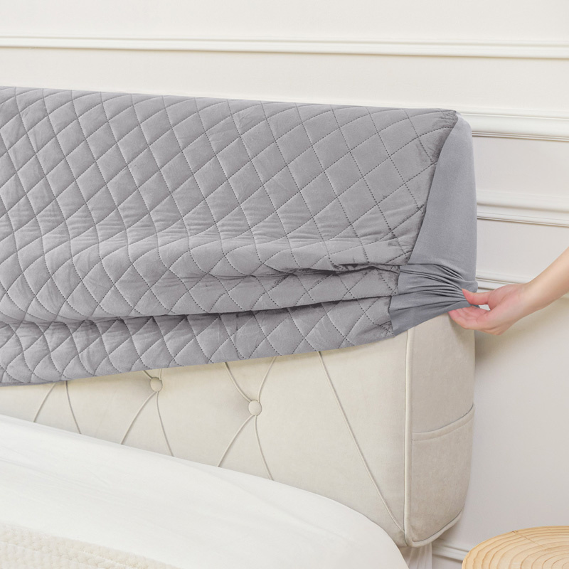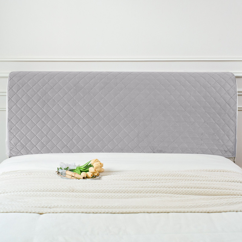 - Pikowany pokrowiec na zagłówek łóżka w kolorze jasnoszarym – elegancki, elastyczny i przyjemny w dotyku. Odświeża wygląd sypialni, chroniąc zagłówek przed kurzem, otarciami i zabrudzeniami.