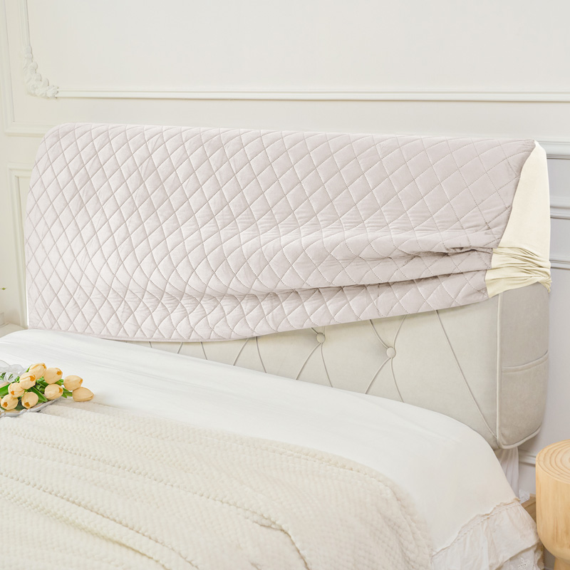 - Pikowany pokrowiec na zagłówek łóżka w kolorze kremowym – elegancki, elastyczny i przyjemny w dotyku. Odświeża wygląd sypialni, chroniąc zagłówek przed kurzem, otarciami i zabrudzeniami.