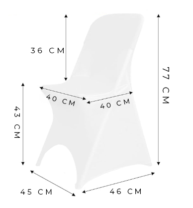 Nasze pokrowce dopasowują się do różnych krzeseł składanych o rozmiarach w podobnych jak na grafice obok.