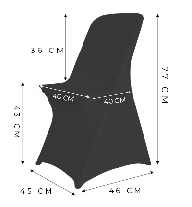 Nasze pokrowce dopasowują się do różnych krzeseł składanych o rozmiarach w podobnych jak na grafice obok.