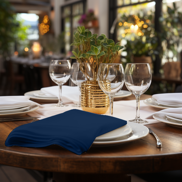 - Serwetki materiałowe w kolorze granatowym w rozmiarze 50x50cm