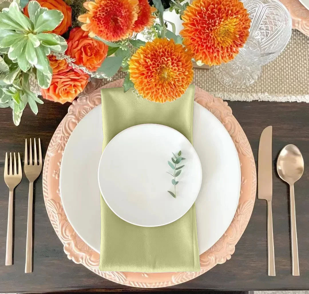 - Oliwkowe serwetki welurowe wprowadzają naturalną, elegancką kolorystykę. Miękkie i uniwersalne. 10 sztuk 45x45 cm.